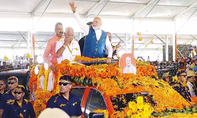 திறந்த ஜீப்பில் பிரதமர் மோடி
