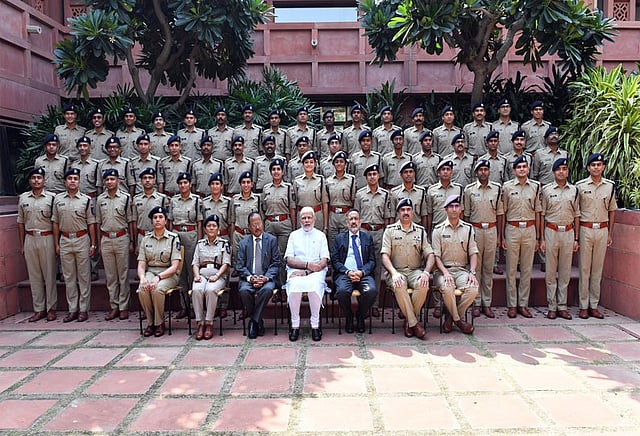 புதுடெல்லியில் பிரதமர் மோடியை 2017ம் ஆண்டுக்கான இந்திய காவல் பணி பயிற்சி அதிகாரிகள் இன்று சந்தித்து உரையாடினர்.