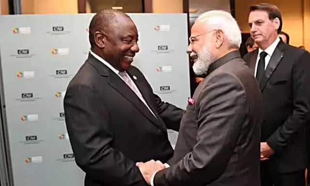 வரும் 22 முதல் 24-ம் தேதி வரை தென் ஆப்பிரிக்கா நடத்தும் பிரிக்ஸ் உச்சி மாநாட்டில் கலந்து கொள்ளுமாறு தென் ஆப்பிரிக்க அதிபர் ராமபோசா, பிரதமர் நரேந்திர மோடிக்கு அழைப்பு விடுத்தார். அத்துடன் அதற்கான ஏற்பாடுகள் குறித்தும் பிரதமர் மோடிக்கு தென் ஆப்பிரிக்க அதிபர் விளக்கினார்.
