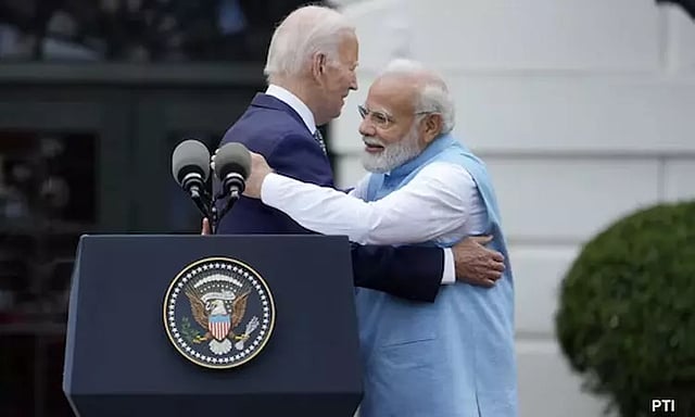 அமெரிக்காவின் வாஷிங்டன் டி.சி.க்கு சென்றடைந்த பிரதமர் மோடியை அமெரிக்க ஜனாதிபதி ஜோ பைடன் மற்றும் முதல் பெண்மணி ஜில் பைடன் வரவேற்றனர்.