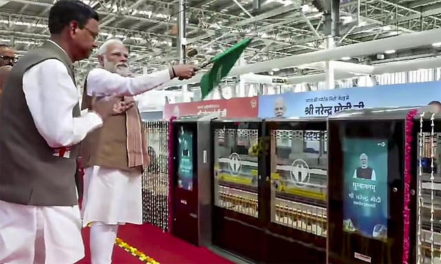 டெல்லி - மீரட் அதிவிரைவு ரயில் வழித்தடத்தின் முழு 82 கி.மீ பாதை கட்டுமானம் நிறைவடைந்த நிலையில் இன்று இந்தியாவின் முதல் அதிவேக நமோ பாரத் ரயில் சேவை மற்றும் மீரட் மெட்ரோ சேவையை கொடியசைத்து பிரதமர் மோடி தொடங்கி வைத்தார். இதனால் டெல்லி- மீரட் அதிவிரைவு மெட்ரோ முழுமையாக இன்று செயல்பாட்டிற்கு வந்துள்ளது.