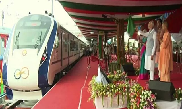 பின்னர், பிரதமர் மோடி கோரக்பூர் ரெயில் நிலையத்துக்கு சென்றார். அங்கு அவர் தொடங்கி வைக்க இருந்த 'வந்தே பாரத்' ரெயிலில் ஏறி அதில் உள்ள வசதிகளை பார்த்தார். அங்கு அமர்ந்திருந்த 34 பள்ளி குழந்தைகளுடன் உரையாடினார். பின்னர், அங்கு நடந்த விழாவில், கோரக்பூரில் இருந்து அயோத்தி வழியாக லக்னோ செல்லும் வந்தே பாரத் எக்ஸ்பிரஸ் ரெயில் போக்குவரத்தை கொடியசைத்து தொடங்கி வைத்தார். இந்த அதிவேக ரெயில் காரணமாக, பயண நேரம் 2 மணி நேரம் குறையும் என்று அதிகாரிகள் தெரிவித்தனர்.