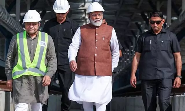 இந்நிலையில், குஜராத்தின் சூரத் மாவட்டத்தில் நடைபெற்று வரும் புல்லட் ரெயில் நிலைய கட்டுமான பணிகளை பிரதமர் மோடி நேற்று ஆய்வு செய்தார். பின்னர், அங்கு பணியாற்றும் ஊழியர்களுடன் பிரதமர் மோடி கலந்துரையாடினார்.