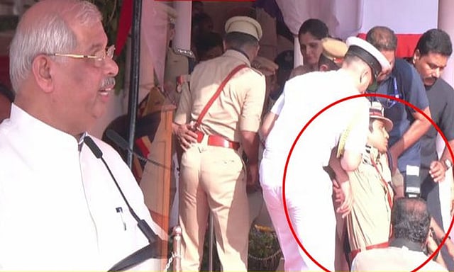 அப்போது அவருக்கு அருகில் நின்று கொண்டிருந்த திருவனந்தபுரம் காவல் ஆணையர் தாமஸ் ஜோஸ், திடீரென மயங்கி விழுந்தார். இதைக்கண்டு அதிர்ச்சியடைந்த அங்கிருந்த காவலர்கள், மயங்கி விழுந்த காவல் ஆணையரை அங்கிருந்து வேறு இடத்திற்கு தூக்கி சென்றனர். உடனடியாக ஆம்புலன்ஸ் மூலம் மருத்துவமனைக்கு அழைத்து செல்லப்பட்டு, காவல் ஆணையர் சிகிச்சை எடுத்துக்கொண்டார். அதன் பின் மீண்டும் அவர் நிகழ்ச்சிக்கு திரும்பினார். குடியரசு தின நிகழ்ச்சியில் காவல் ஆணையர் திடீரென மயங்கி விழுந்த சம்பவத்தால் அங்கு சிறிதுநேரம் பரபரப்புடன் காணப்பட்டது.