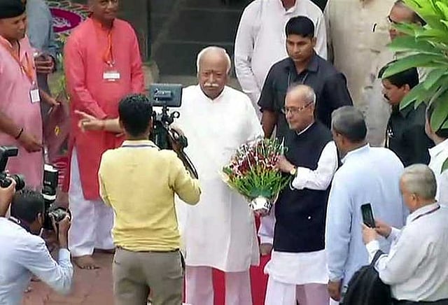 பின்னர், ஆர்.எஸ்.எஸ் இயக்கத்தின் தலைவரான மோகன் பகவத் உடன் அவர் சிறிது நேரம் பேசினார். இதனை அடுத்து, ஆர்.எஸ்.எஸ் நிகழ்ச்சியில் பிரணாப் முகர்ஜி கலந்து கொண்டுள்ளார். ஆர்.எஸ்.எஸ் இயக்கத்தில் பயிற்சி முடித்தவர்கள் நடத்திய அணி வகுப்பையும் பிரணாப் முகர்ஜி பார்வையிட்டார்.
