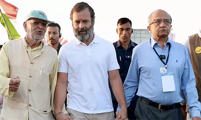 காங்கிரஸ் முன்னாள் தலைவர் மற்றும் எம்.பி.யான ராகுல் காந்தி தலைமையில் இந்திய ஒற்றுமை யாத்திரை நடந்து வருகிறது. இதில், திரளான காங்கிரஸ் தொண்டர்கள் கலந்து கொண்டு வருகின்றனர். இந்த பாதயாத்திரையானது நாளை மராட்டிய எல்லையை அடைகிறது. இந்தநிலையில் இன்று நடைபெற்று வரும் பாத யாத்திரையில் சமூக ஆர்வலரும், மூத்த வழக்கறிஞருமான பிரசாந்த் பூஷன் பங்கேற்றார். தெலுங்கானாவில் உள்ள மேடக் மாவட்டத்தில் உள்ள அல்லதுர்க்கில் இருந்து இன்று காலை மீண்டும் தொடங்கிய பேரணியில், எஸ்சி பிரிவினைக்காக போராடும் அமைப்பான மதிகா இட ஒதுக்கீடு போராட்ட சமிதியின் (எம்ஆர்பிஎஸ்) தலைவர் மந்த கிருஷ்ண மடிகாவும் ராகுல்காந்தியின் பாதயாத்திரையில் பங்கேற்றார்.