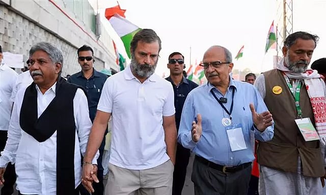 ராகுல்காந்தியுடன் நூற்றுக்கணக்கான காங்கிரஸ் தொண்டர்களும் நடந்து சென்றனர். நேற்றைய நடைபயணத்தில், ராகுல்காந்தியுடன் பிரபல வக்கீல் பிரசாந்த் பூஷணும் கலந்து கொண்டார்.
