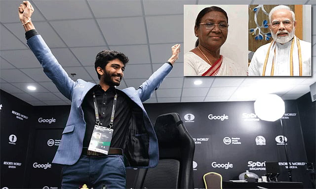 இதுதொடர்பாக ஜனாதிபதி திரவுபதி முர்மு தனது எக்ஸ் வலைதளத்தில், "உலக செஸ் சாம்பியன்ஷிப்பை வென்ற இளம் வீரர் குகேசுக்கு மனமார்ந்த வாழ்த்துக்கள். அவர் இந்தியாவிற்கு பெருமை சேர்த்துள்ளார். அவரது வெற்றி இந்தியாவின் அதிகாரத்தை ஒரு சதுரங்க சக்தியாக முத்திரை குத்துகிறது. சபாஷ் குகேஷ்! ஒவ்வொரு இந்தியர் சார்பாகவும், நீங்கள் எதிர்காலத்தில் புகழ் பெற வாழ்த்துகிறேன்" என்று அதில் அவர் பதிவிட்டுள்ளார்.