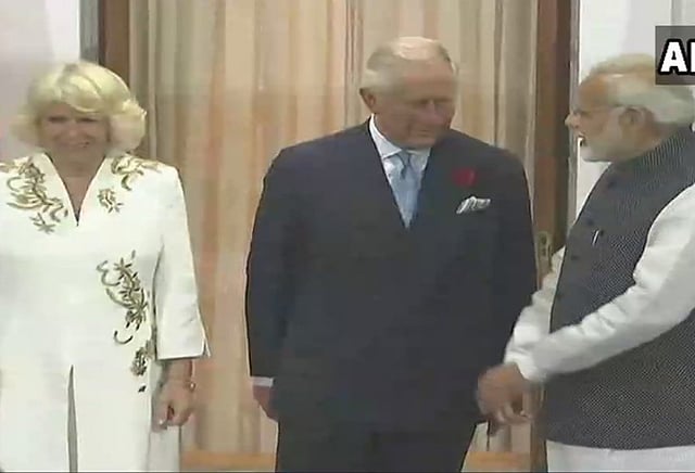முன்னதாக, இன்று பிற்பகல் டெல்லி வந்து சேர்ந்த சார்லஸுடன் அவரது மனைவியும் இங்கிலாந்து இளவரசியுமான கமிலா பார்கர் பைவ்ல்ஸ் உடன் வந்தார். டெல்லி இந்திராகாந்தி சர்வதேச விமான நிலையத்தில் வந்திறங்கிய பிரிட்டன் இளவரசர் சார்லஸ் மற்றும் கமீலா தம்பதியினரை வெளியுறவு துறை இணையமைச்சர் வி.கே.சிங் உள்ளிட்ட முக்கிய அதிகாரிகள் உற்சாக வரவேற்பு அளித்தனர்.