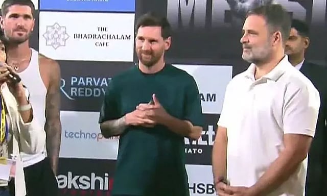 கொல்கத்தா பயணம் முடிந்ததும், மெஸ்சி இன்று இரவு ஐதராபாத்துக்கு சென்றார். ஐதராபாத்தில் மெஸ்ஸிக்கு அமோக வரவேற்பு அளிக்கப்பட்டது.. மெஸ்ஸியை சந்திக்க மக்களவை எதிர்க்கட்சி தலைவர் ராகுல் காந்தி டெல்லியில் இருந்து ஐதராபாத் சென்றார்.