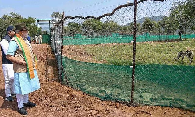 பிரதமர் மோடி பிறந்தநாள் கடந்த 17-ந்தேதி கொண்டாடப்பட்டது. அதையொட்டி, நமீபியாவில் இருந்து 8 சிறுத்தைகள் விமானம் மூலம் வரவழைக்கப்பட்டிருந்தன. அந்த சிறுத்தைகளை மத்தியபிரதேச மாநிலம் குணோவில் உள்ள தேசிய வன உயிரியல் பூங்காவில் பிரதமர் மோடி திறந்துவிட்டார்.