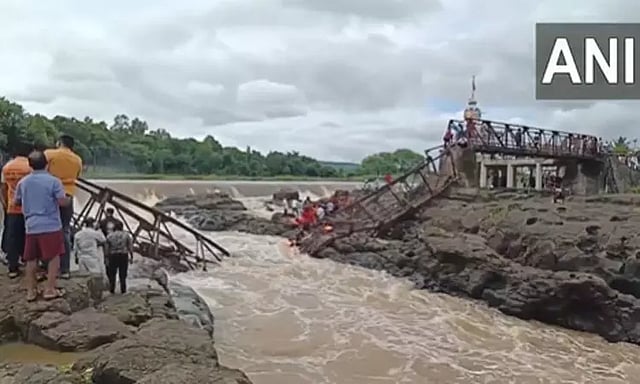 மராட்டிய மாநிலம் புனே அருகே அமைந்துள்ள மாவல் தாலுகாவிற்கு சுற்றுலா பயணிகள் அதிக அளவில் வருகை தருகின்றனர். இந்த நிலையில், இன்று அங்குள்ள டெகு பகுதியில் இந்திரயானி ஆற்றின் மீது கட்டப்பட்டிருந்த பாலத்தின் மீது சுற்றுலா பயணிகள் நின்று கொண்டிருந்தபோது எதிர்பாராத விதமாக பாலம் இடிந்து விழுந்தது.