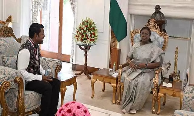 டெல்லியில் உள்ள ராஷ்டிரபதி பவனில் ஜனாதிபதி திரவுபதி முர்முவை மணல் சிற்ப கலைஞர் சுதர்சன் பட்நாயக் இன்று சந்தித்து பேசினார். இந்தியாவின் 4-வது உயரிய விருது என கூறப்படும் பத்மஸ்ரீ விருது பெற்றுள்ள பட்நாயக், ஒடிசாவின் பூரி பீச்சில் மணல் சிற்ப பள்ளிக்கூடம் ஒன்றை அவர் நடத்தி வருகிறார்.