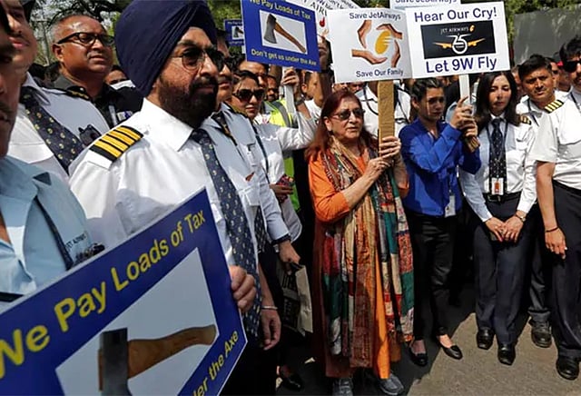 இதற்கிடையே நாங்கள் கடந்த 4 மாதங்களாகவே சம்பளம் இல்லாமல்தான் பணியாற்றினோம் என ஜெட் ஏர்வேஸ் ஊழியர்கள் சிலர் ராய்டர்ஸ் செய்தி நிறுவனத்திடம் தெரிவித்துள்ளனர். அவர்கள், தங்களுடைய கடனையும் செலுத்தவில்லை, பள்ளிக்கு கட்டணம் செலுத்தவில்லை என்ற வேதனையை தெரிவித்துள்ளனர். இந்நிலையில் ஜெட் ஏர்வேஸ் மிகவும் மோசமான நெருக்கடியில் சிக்கிய பின்னர் நிர்வாகம், எங்களை மிகவும் இருள் சூழ்ந்த நிலையில் தள்ளிவிட்டுள்ளது என்று நூற்றுக்கணக்கான ஊழியர்கள் மும்பை மற்றும் டெல்லியில் போராட்டத்தில் இறங்கியுள்ளனர்.