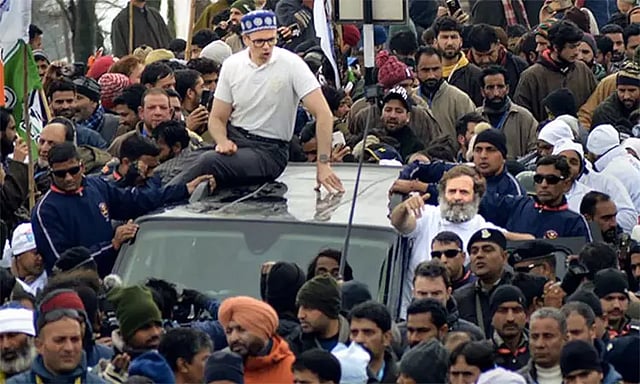 காங்கிரஸ் முன்னாள் தலைவர் ராகுல்காந்தி மேற்கொண்டு வரும் பாதயாத்திரை, தற்போது காஷ்மீரில் நடந்து வருகிறது. நேற்று முன்தினம் குடியரசு தினத்தையொட்டி, விடுமுறை விடப்பட்டிருந்தது. நேற்று காலை பனிஹல் என்ற இடத்தில் இருந்து பாதயாத்திரை தொடங்கியது. ராகுல்காந்தியுடன் நூற்றுக்கணக்கான காங்கிரஸ் தொண்டர்கள் தேசிய கொடி ஏந்தி பங்கேற்றனர். காஷ்மீர் முன்னாள் முதல்-மந்திரியும், தேசிய மாநாட்டு கட்சி துணைத்தலைவருமான உமர் அப்துல்லாவும், யாத்திரையில் கலந்து கொண்டார். ராகுல்காந்தியை போலவே அவரும் வெள்ளை நிற டி-சர்ட் அணிந்து நடந்தார்.