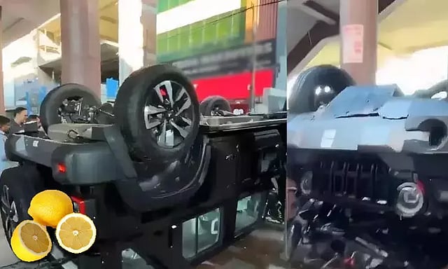 அவர் லேசாக காரை முன்னால் நகர்த்துவதற்கு பதில், ஆக்சிலேட்டரை வேகமாக அழுத்தி மிதித்து விட்டார். அவ்வளவுதான், அடுத்த நொடி கார் குதிரைப் பாய்ச்சலில் ஷோரூமின் கண்ணாடிச்சுவரை உடைத்து வெளியே பறந்தது. பின்னர் மேலே இருந்து தலைகுப்புற கீழே விழுந்து மல்லாக்க கரப்பான் பூச்சி போல கவிழ்ந்தது.