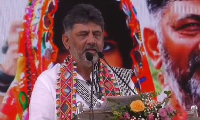 கர்நாடகாவில் துணை முதல்-மந்திரி டி.கே. சிவக்குமார் சுர்கொந்தனகொப்பா பகுதியில் 287-வது ஸ்ரீ சேவாலால் ஜெயந்தி நிகழ்ச்சியில் இன்று கலந்து கொண்டார். இதன்பின்னர், இதுதொடர்பான கூட்டம் ஒன்றில் அவர் பேசி கொண்டிருக்கும்போது, திடீரென 20 முதல் 25-க்கும் மேற்பட்டோர் போராட்டத்தில் ஈடுபட்டனர்.