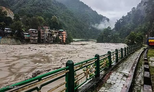 இந்த பேய் மழையால் அங்குள்ள டீஸ்டா ஆற்றில் திடீர் வெள்ளப்பெருக்கு ஏற்பட்டது. ஆற்றின் இருபுறமும் உள்ள கரைகளை உடைத்துக்கொண்டு சீறிப்பாய்ந்த பெரு வெள்ளம் கிராமங்கள் மற்றும் நகரங்களை மூழ்கடித்து சுங்தாங் அணையை சென்றடைந்தது.