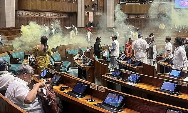 கடந்த 13-ந்தேதி நாடாளுமன்றத்தில் மக்களவைக்குள் 2 பேர் அத்துமீறி புகுந்து வண்ண புகை குண்டுகளை வீசினர். அதே நேரத்தில் நாடாளுமன்றத்தின் வெளியேயும் ஒரு பெண் மற்றும் ஒரு ஆண் வண்ண புகை குண்டுகளை வீசியபடி கோஷங்கள் எழுப்பினர். இந்த சம்பவம் நாட்டையே அதிர்ச்சிக்குள்ளாக்கியது. நாடாளுமன்றத்தில் பாதுகாப்பு குறைபாடு குறித்து எதிர்க்கட்சிகள் கடும் கண்டனம் தெரிவித்தன.