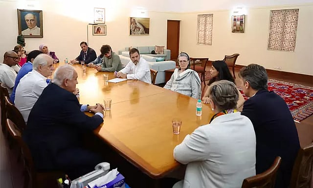 இந்நிலையில் இந்த குழுவினர் நேற்று காங்கிரஸ் நாடாளுமன்றக்குழு தலைவர் சோனியா மற்றும் மக்களவை எதிர்க்கட்சித்தலைவர் ராகுல் காந்தி ஆகியோரை சந்தித்து பேசினர். சோனியா வீட்டில் நடந்த இந்த சந்திப்பின்போது, பல்வேறு விவகாரங்கள் குறித்து விவாதிக்கப்பட்டது.
