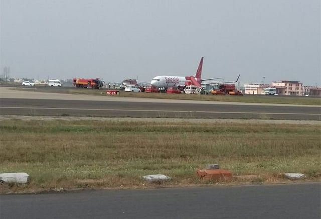 விமானத்தில் இருந்த பயணிகள் பத்திரமாக தரையிறக்கப்பட்டனர். அவர்கள் விமான நிலைய கட்டிடத்திற்கு அழைத்து வரப்பட்டனர்.