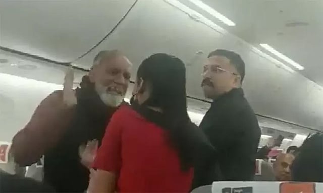 டெல்லியில் இருந்து ஐதராபாத்துக்கு ஸ்பைஸ்ஜெட் விமானம் ஒன்று சென்று கொண்டிருந்தது. பயணிகள் அனைவரும் அமர்ந்துவிட்ட நிலையில், விமானம் புறப்படத் தயாராக இருந்தது. அப்போது விமானப் பணிப்பெண்ணைத் தவறான இடத்தில் ஒரு முதியவர் தொட்டதாகக் கூறப்படுகிறது. இதனால் கோபமடைந்த அந்த விமானப் பணிப்பெண் சம்பந்தப்பட நபரிடம் வாக்குவாதத்தில் ஈடுபட்டார்.