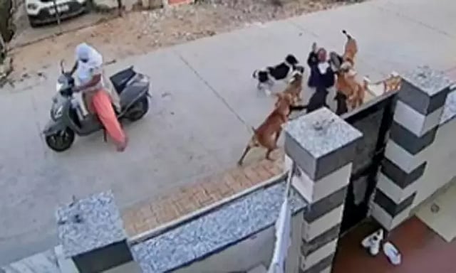 ராஜஸ்தான் மாநிலம் அல்வார் பகுதியில் நவ்யா என்ற 18 வயது இளம்பெண் நடை பயிற்சி சென்றார். அங்குள்ள ஜே.கே. நகரில் அவர் நடந்து சென்ற போது அவர் செல்போன் பேசியவாறு சென்றுள்ளார். அப்போது அங்கு 10-க்கும் மேற்பட்ட தெரு நாய்கள் நவ்யாவை சூழ்ந்தன. இதனால் நவ்யா கத்தி கூச்சலிட்டார்.