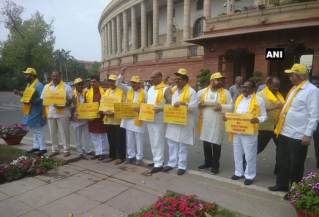இந்தநிலையில் இன்று காலை பாராளுமன்ற வளாகம் அருகே ஆந்திராவுக்கு சிறப்பு அந்தஸ்து வழங்க கோரி தெலுங்கு தேச கட்சியை சேர்ந்த எம்.பிகள் போராட்டம் நடத்தினர். இதனால் அங்கு சிறிது நேரம் பரபரப்பு நிலவியது.
