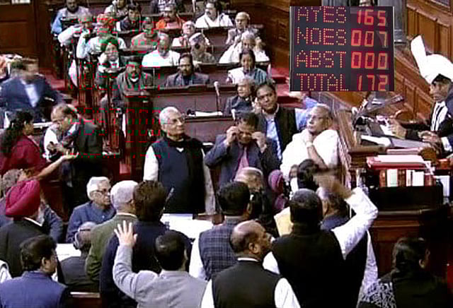 அ.தி.மு.க., தி.மு.க., ராஷ்டிரீய ஜனதாதளம், பிஜூ ஜனதாதளம் ஆகிய கட்சிகளை சேர்ந்த 7 உறுப்பினர்கள் எதிர்த்து வாக்களித்தனர்.