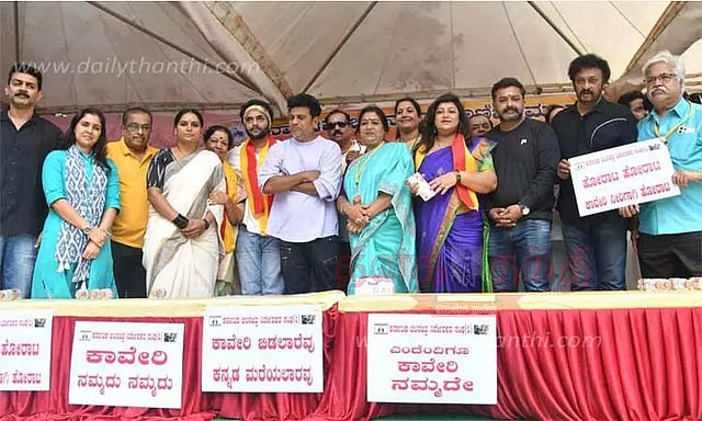 கன்னட திரைப்பட வர்த்தக சபை சார்பில் காவிரி விவகாரத்தில் கர்நாடகத்தை ஆதரித்து போராட்டம் பெங்களூருவில் நேற்று நடைபெற்றது.