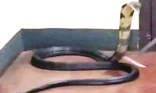 கேரள மாநிலம் பாலக்காடு மாவட்டம் மன்னார்காடு அருகே கண்டமங்கலம் புற்றானிக்காடு பகுதியை சேர்ந்தவர் ஹம்சா முசலியார் (வயது 68). இவர் ரம்ஜான் நோன்பு இருந்து வருவதால், நேற்று முன்தினம் மாலை தொழுது கொண்டிருந்தார். அப்போது திறந்து கிடந்த வீட்டிற்குள் ராஜநாகம் புகுந்தது. இதை பார்த்த ஹம்சா முசலியார், வீட்டில் இருந்த குடும்பத்தினரை உஷார்படுத்தினார். மேலும் அவர்கள் பீதி அடைந்தனர்.