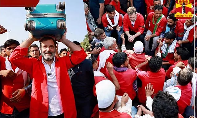 இந்தநிலையில், டெல்லியில் உள்ள ஆனந்த் விஹார் ரெயில் நிலையத்திற்கு காங்கிரஸ் எம்.பி ராகுல் காந்தி திடீரென சென்றார். அப்போது ரெயில் நிலையத்தில் பணிபுரியும் (போர்ட்டர்கள்) சுமை தூக்கும் தொழிலாளிகளை ராகுல் காந்தி சந்தித்து பேசினார். மேலும் சுமை தூக்கும் தொழிலாளிகளின் குறைகள், குடும்பச் சூழ்நிலை குறித்து ராகுல் கேட்டறிந்தார். அதனை தொடர்ந்து சுமை தூக்கும் தொழிலாளி உடை அணிந்து, பயணிகளின் உடைமைகளை ராகுல் காந்தி சிறிது தூரம் தூக்கி சென்றார்.