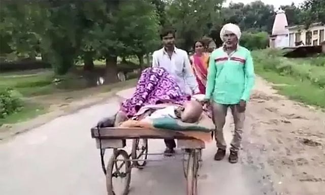 மத்தியப் பிரதேசத்தில் ஒருவர் தனது நோய்வாய்ப்பட்ட தந்தையை ஆம்புலன்ஸ் வசதி கிடைக்காததால் கை வண்டியில் மருத்துவமனைக்கு அழைத்துச் சென்றுள்ளார்.
