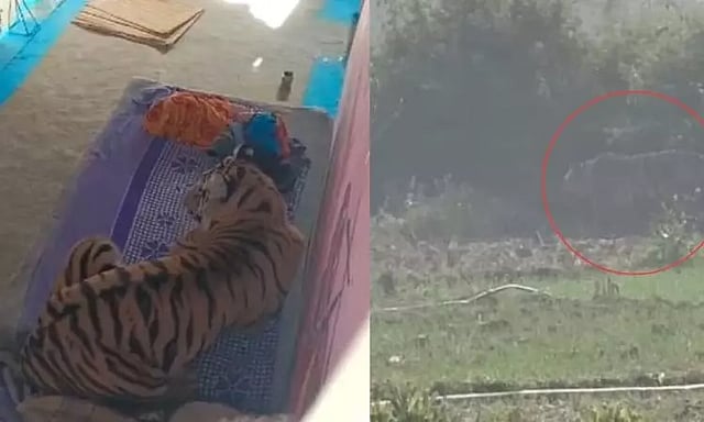 இந்நிலையில், பூங்காவுக்கு அருகே உள்ள கிராமத்திற்குள் இன்று மதியம் புலி நுழைந்துள்ளது. வனப்பகுதியில் இருந்து புலி ஊருக்குள் வருவதை கண்ட கிராம மக்கள் அலறியடித்து ஓட்டம் பிடித்தனர்.