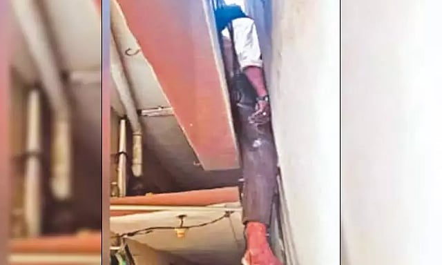 குடிப்பழக்கத்திற்கு அடிமையான இவர் நேற்று முன்தினம் இரவு சாப்பிட்ட பின்னர் வீட்டின் மொட்டை மாடிக்கு சென்று தூங்கினார். அப்போது எதிர்பாராத விதமாக கீழே தவறி விழுந்தார். இதில் அவரது வீட்டின் சுவருக்கும், பக்கத்து வீட்டு சுவருக்கும் இடையே சிக்கிக்கொண்டார். அதில் இருந்து அவரால் மீள முடியாமல் மயங்கியதாக தெரிகிறது. இரவு நேரம் என்பதால் யாரும் இதை பார்க்கவில்லை.