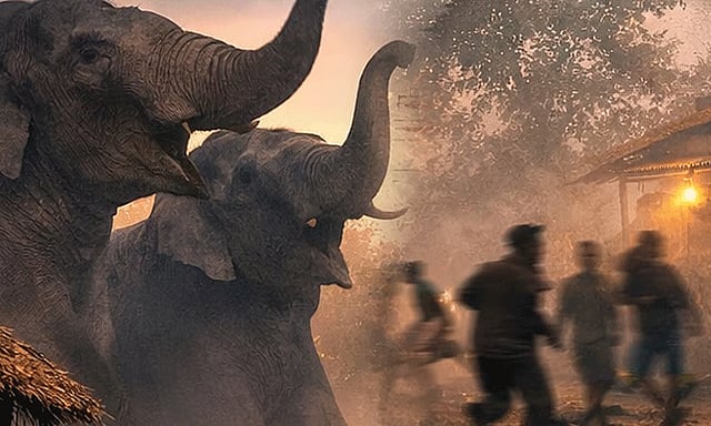 இதற்கிடையில், வனத்துறையினர் பட்டாசுகளை வெடித்து யானைகளை விரட்டியபோது, ஒரு யானை ஆக்ரோஷமடைந்து அதிகாரிகளை துரத்தியது. அந்த யானையிடம் இருந்து தப்பிக்க அதிகாரிகள் ஒரு வீட்டிற்குள் தஞ்சம் புகுந்தனர்.