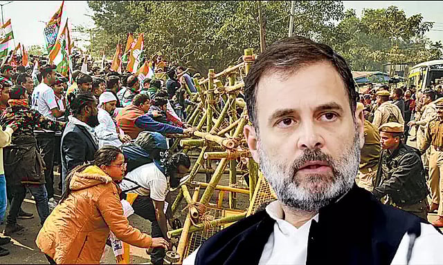 காங்கிரஸ் முன்னாள் தலைவர் ராகுல்காந்தி, கடந்த 14-ந் தேதி மணிப்பூரில் 'பாரத ஒற்றுமை நீதி யாத்திரையை' தொடங்கினார். மார்ச் 20-ந் தேதி, மும்பையில் இந்த யாத்திரை முடிவடைகிறது. நேற்று முன்தினம் அசாம் மாநில தலைவர் கவுகாத்திக்குள் நுழைய முயன்றபோது, யாத்திரையை போலீசார் தடுத்து நிறுத்தினர்.