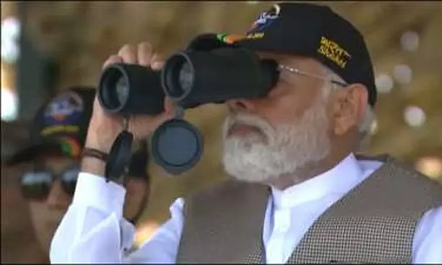 ராஜஸ்தான் மாநிலம் பொக்ரானில் இன்று 'பாரத் ஷக்தி' என்ற உள்நாட்டில் தயாரிக்கப்பட்ட ராணுவ ஆயுதங்கள் காட்சிப்படுத்தப்பட்டன. இதனைத் தொடர்ந்து முப்படைகளின் ஒத்திகைப் பயிற்சியும் நடத்தப்பட்டது. 50 நிமிடங்கள் இந்த பயிற்சி நடைபெற்றது. இந்த ஒத்திகையை பிரதமர் மோடி நேரில் சென்று பார்வையிட்டார். மோடியுடன் பாதுகாப்புத்துறை அமைச்சர் ராஜ்நாத்சிங், ராணுவ தலைமை தளபதி மனோஜ் பாண்டே ஆகியோரும் பயிற்சியை பார்வையிட்டனர். அதோடு, 40 நாடுகளைச் சேர்ந்த பிரதிநிதிகளும் பார்வையிட்டனர்.