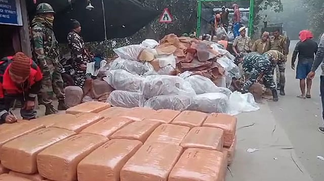 சட்டவிரோத கடத்தலை தடுப்பதற்காக வாகன சோதனை செய்ய, சோதனை சாவடி ஒன்றும் அந்த பகுதியில் அமைக்கப்பட்டது. இதில், லாரி ஒன்றில் ரப்பர் கட்டுகளுக்கு அடியில் காய்ந்த நிலையிலான கஞ்சா வகை போதை பொருட்கள் மறைத்து வைக்கப்பட்டு இருந்தன. 1,630 கிலோ எடை கொண்ட அந்த போதை பொருட்களின் மதிப்பு ரூ.1.63 கோடி இருக்கும் என்று தலாய் போலீஸ் சூப்பிரெண்டு அவினாஷ் ராய் கூறினார்.