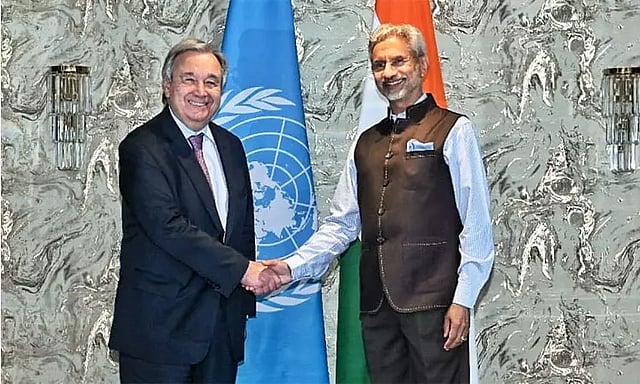 இதனையடுத்து, குஜராத் சென்ற ஐ.நா. சபை பொதுச்செயலாளர் குட்டரெஸ், வெளியுறவுத்துறை மந்திரி ஜெய்சங்கரை சந்தித்து பேச்சுவார்த்தை நடத்தினார்.