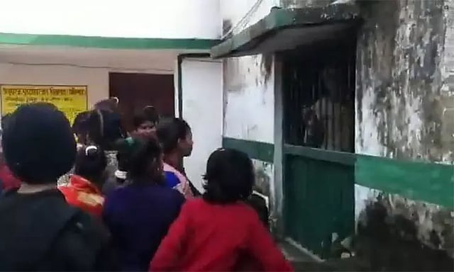 இதுகுறித்து தலைமை ஆசிரியர் ஜெயபிரகாஷ் கூறும்போது, இந்த சம்பவம் குறித்து உயர் அதிகாரிகளுக்கு தகவல் தெரிவித்துள்ளேன். அனைத்து ஆசிரியர்களும் ஒரு அறையில் அடைக்கப்பட்டுள்ளனர். கிராமத் தலைவரின் வேண்டுகோளின் பேரில் மாணவர்கள் ஆசிரியர்களை செல்ல அனுமதித்தனர் என்று கூறினார்.