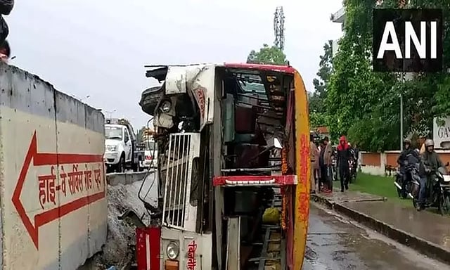அப்போது பேருந்து ஓட்டுநர் தீடீரென பேருந்தை நிறுத்த முயன்றபோது பேருந்து கவிழ்ந்தது. இந்த சம்பவத்தில் பேருந்தில் இருந்த 10க்கும் மேற்பட்ட பயணிகள் படுகாயமடைந்தனர். எனினும் நல்வாய்ப்பாக உயிர் சேதம் ஏதுவும் ஏற்படவில்லை. படுகாயமடைந்தவர்கள் அருகிலுள்ள மருத்துவமனையில் அனுமதிக்கப்பட்டுள்ளதாக சீ.ஓ. சதர் நிஹாரிகா செம்வால் தெரிவித்தார்.