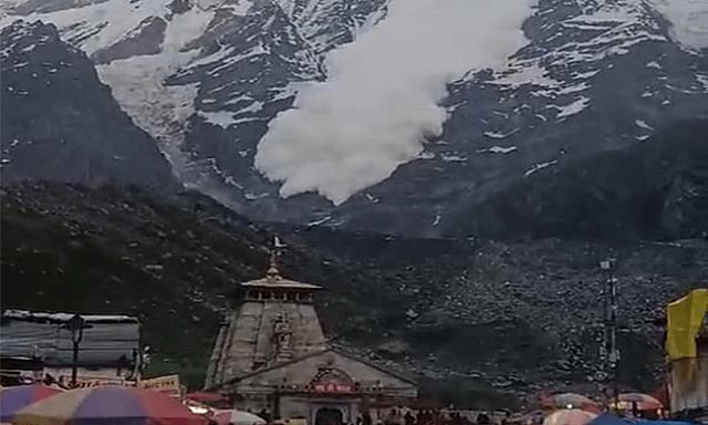 உத்தரகாண்ட் மாநிலம் ருத்ரபிரயாக் பகுதியில் பிரசித்தி பெற்ற கேதர்நாத் கோவில் அமைந்துள்ளது. இந்த கோவிலுக்கு ஒவ்வொரு ஆண்டும் லட்சக்கணக்கான பக்தர்கள் புனித யாத்திரை மேற்கொள்கின்றனர். இந்நிலையில் இந்த கோவில் அருகே உள்ள மலையில் இன்று பனிச்சரிவு ஏற்பட்டுள்ளது.