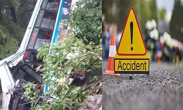 உத்தரகாண்ட் மாநிலம் ஹரித்வார் மாவட்டம் லால்தாங்கிலிருந்து பவுரி நோக்கி திருமண வீட்டார் 40 முதல் 50 பேரை ஏற்றிக்கொண்டு பஸ் ஒன்று சென்று கொண்டிருந்தது. சிமண்டி கிராமம் அருகே சென்ற பஸ் டிரைவரின் கட்டுப்பாட்டை இழந்து சாலையோரம் இருந்த 200 அடி பள்ளத்தாக்கில் கவிழ்ந்து விபத்துக்குள்ளானது.