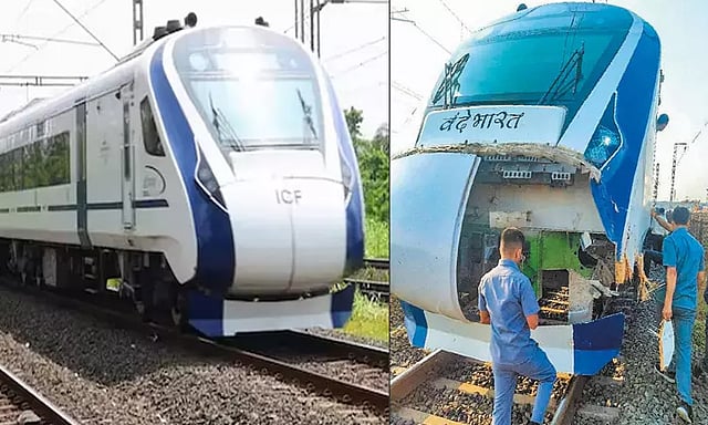 அடுத்தடுத்து 2 முறை கால்நடைகள் மீது வந்தேபாரத் அதிவிரைவு எக்ஸ்பிரஸ் ரெயில் மோதி விபத்துக்குள்ளான சுவடு மறைவதற்கு முன்பாக, நேற்று 3-வது முறையாக அந்த ரெயில் விபத்தை எதிர்கொண்டது. இந்த முறையும் கால்நடை மூலம்தான் அந்த ரெயிலுக்கு சோதனை வந்துள்ளது.
