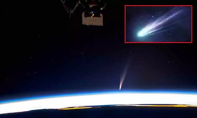சர்வதேச விண்வெளி நிலையத்தில் இருக்கும் விண்வெளி வீரர் டான் பெட்டிட், பூமியின் மேலே இந்த வால் நட்சத்திரம் கடந்து சென்றபோது எடுத்த புகைப்படம் ஒன்றை பகிர்ந்து இருக்கிறார்.
