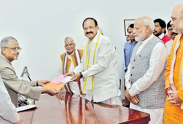 பிரதமர் மோடி, நிதி மந்திரி அருண்ஜெட்லி, வெளியுறவு மந்திரி சுஷ்மா சுவராஜ் மற்றும் தேசிய ஜனநாயக கூட்டணி கட்சிகளின் தலைவர்கள் வெங்கையா நாயுடுவின் பெயரை முன்மொழியவும், வழிமொழியவும் செய்தனர். வெங்கையா நாயுடுவுக்காக கூடுதல் வேட்பு மனுக்களையும் அவர்கள் சமர்ப்பித்தனர்.