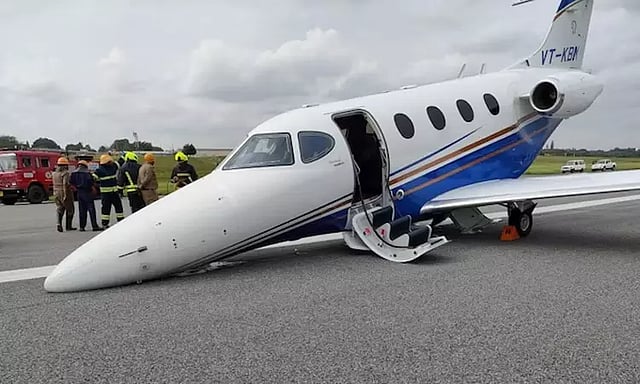 ஆனால் விமானியின் சாதுரியத்தால் விமானம் பத்திரமாக தரையிறக்கப்பட்டது. தரையிறக்கத்தின் மோது ஓடுதளத்தில் தேங்கி இருந்த தண்ணீரில் வழுக்கி சென்ற விமானம் சற்று தடுமாறியது. ஆனாலும், இந்த தரையிறக்கத்தின் போது விமானத்தில் இருந்த 2 விமானிகளுக்கும் எந்த வித பாதிப்பும் ஏற்படவில்லை.