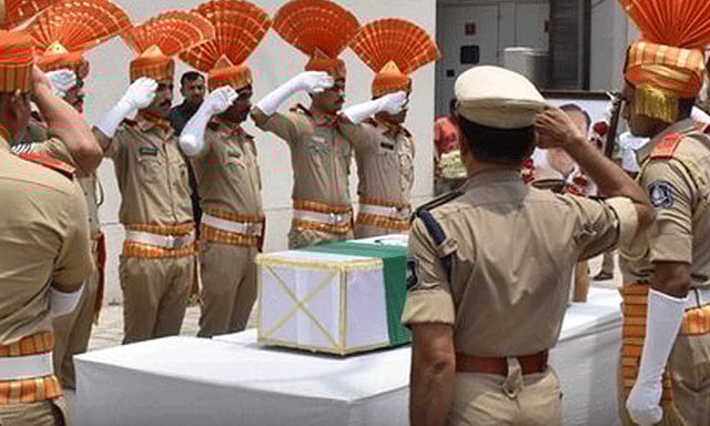இந்நிலையில் இன்று, விஜய் ரூபானியின் உடல், மூவர்ணக் கொடியால் போர்த்தப்பட்டு, ராஜ்கோட்டில் உள்ள அவரது சொந்த ஊருக்குக் கொண்டு செல்லப்பட்டது. அங்கு, குஜராத் முதல் மந்திரி பூபேந்திர படேல், மத்திய மந்திரி அமித் ஷா உள்ளிட்ட பல தலைவர்கள் அஞ்சலி செலுத்தினர். பின்னர், 21 குண்டுகள் முழங்க அரசு மரியாதையுடன் அவரது உடல் தகனம் செய்யப்பட்டது.