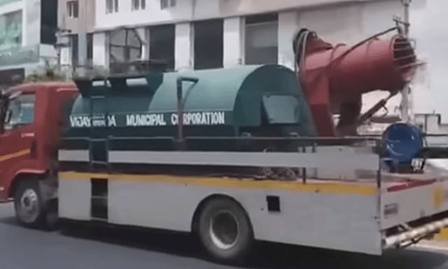 இந்த நிலையில் ஆந்திர மாநிலம் விஜயவாடாவில் கோடை வெயிலின் தாக்கம் அதிகரித்ததை தொடர்ந்து, வெப்பத்தின் கொடுமையை சமாளிக்கவும், சாலைகளின் வெப்பத்தை குறைக்கவும் ஆண்டி-ஸ்மோக் கன் மூலம் தண்ணீர் தெளிக்கும் நடவடிக்கை மேற்கொள்ளப்பட்டது.